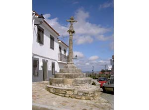 Se erige sobre una pieza cilíndrica de tres cuerpos, con basa y plinto. Fuste liso. Capitel muy decorado y deteriorado, con hojas de acanto, bolas, etc. Como colofón se ubica la cruz que parece emular una figura humana, con la imagen de Cristo y de un Santo a ambos lados.